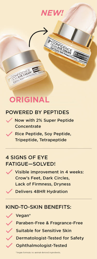 Discover IT® Confidence in an Eye Cream is the anti-aging eye cream you know and love—reformulated to help you solve 4 signs of eye fatigue—including crow’s feet, dark eye circles, lack of firmness and dryness.